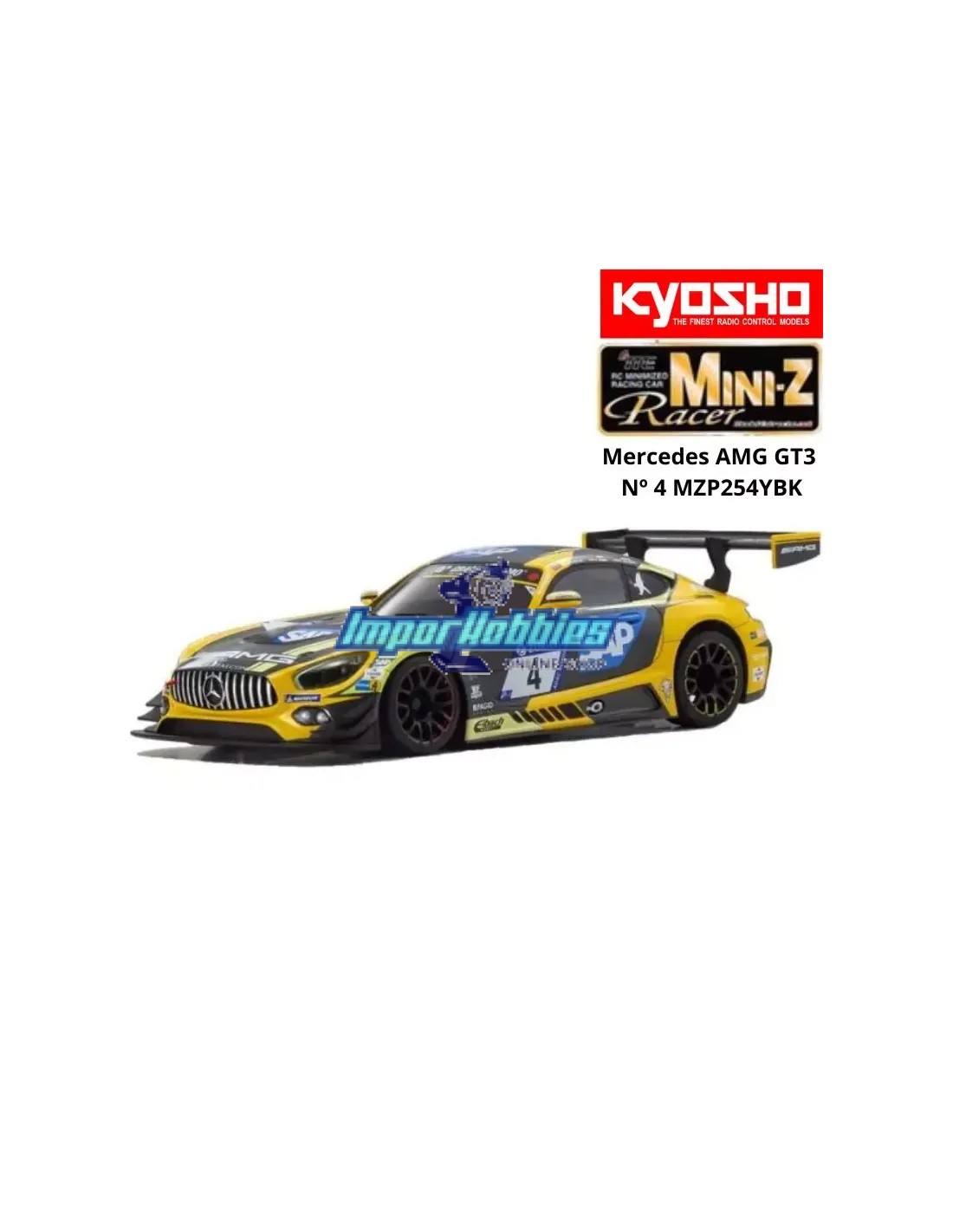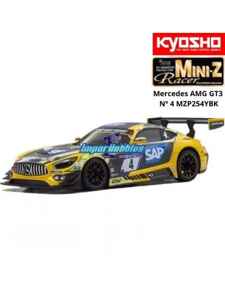 Carrocería pintada 98mm Kyosho Mini-Z MR-03 / RWD Mercedes AMG GT3 Nº 4 MZP254YBK