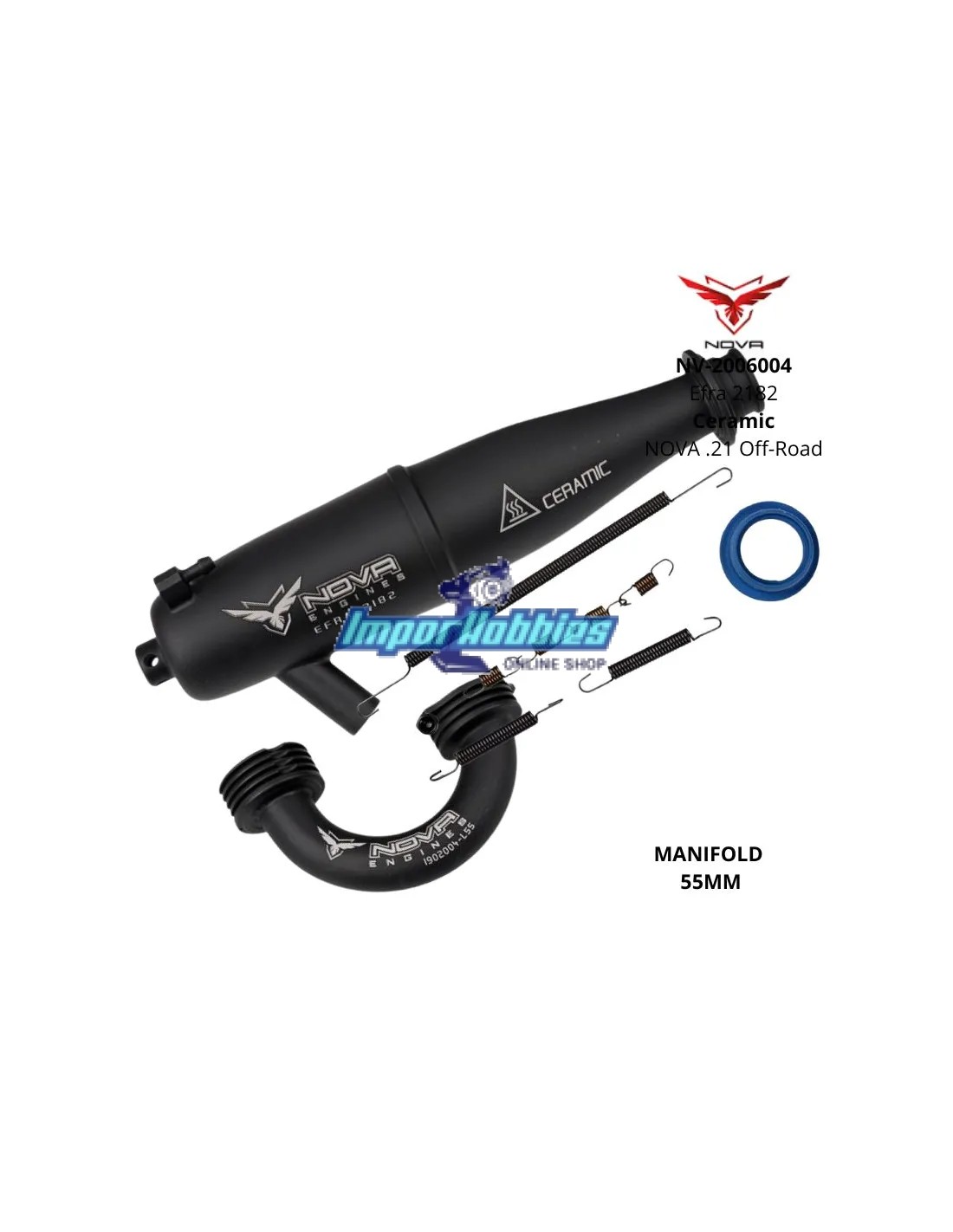Escape completo Nova Efra 2182 Cerámico - Codo 55mm 1/8 Buggy / Truggy 2006004