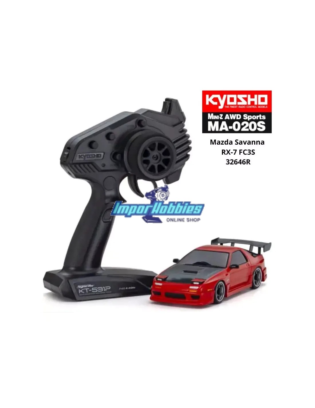 Kyosho Mini-Z AWD MA020 4WD Mazda Savanna RX-7 FC3S avec "Aero Kit" Rouge Drift Pack 2.4ghz 90mm Readyset 32646R