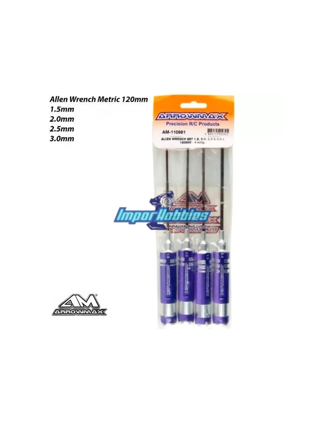 Set de cles allen metrique 1.5-2.0-2.5-3.0 x 120mm Arrowmax AM110991